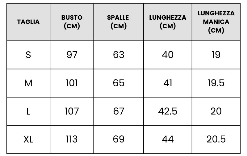 Per sicurezza prendi le misure in modo da goderti al meglio la tua maglietta.